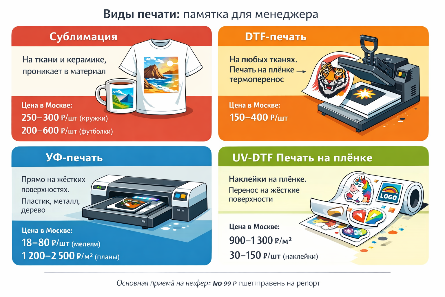 Быстрый ориентир для брифа: что печатаем, чем печатаем, какие есть производственные возможности.